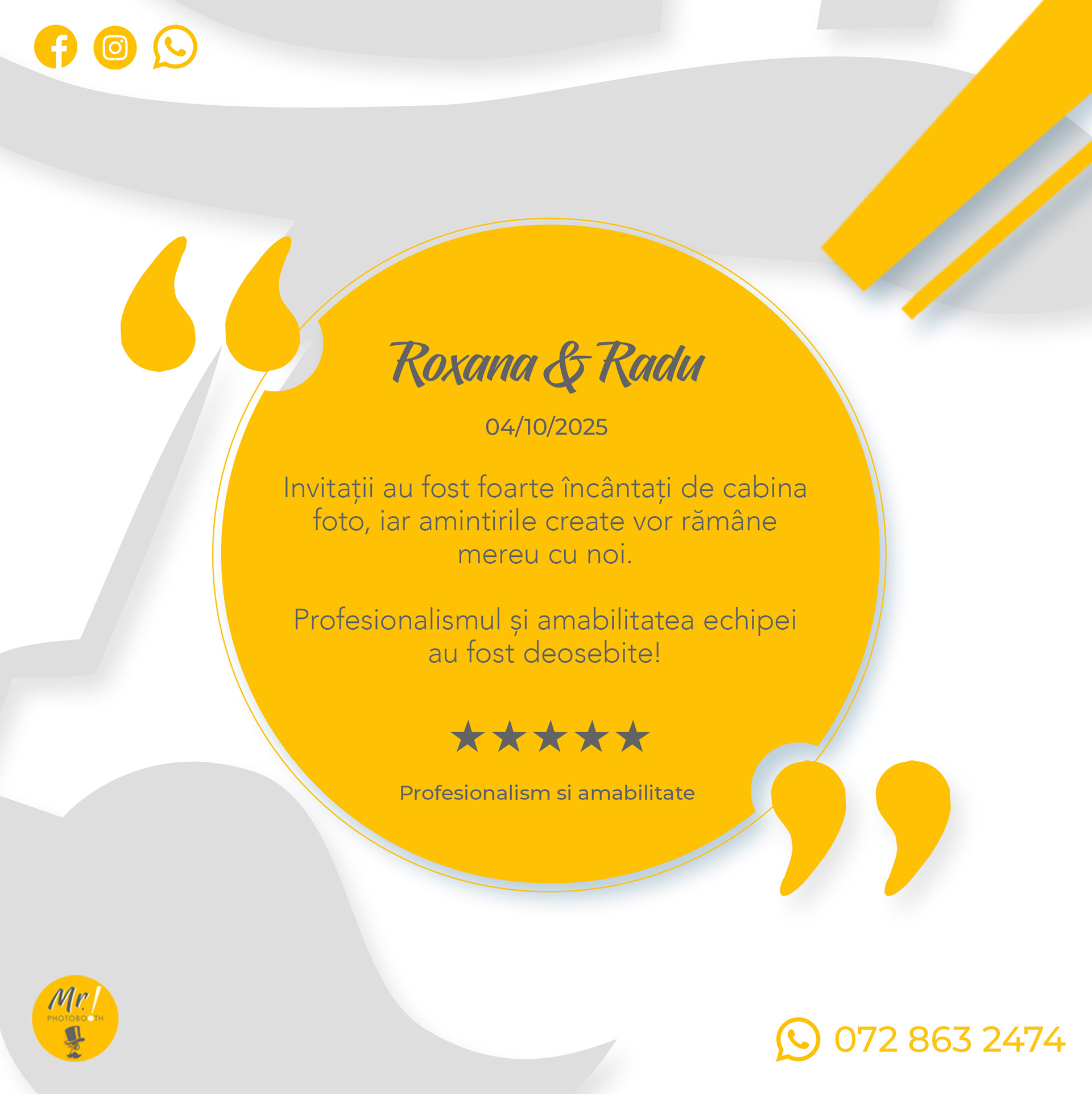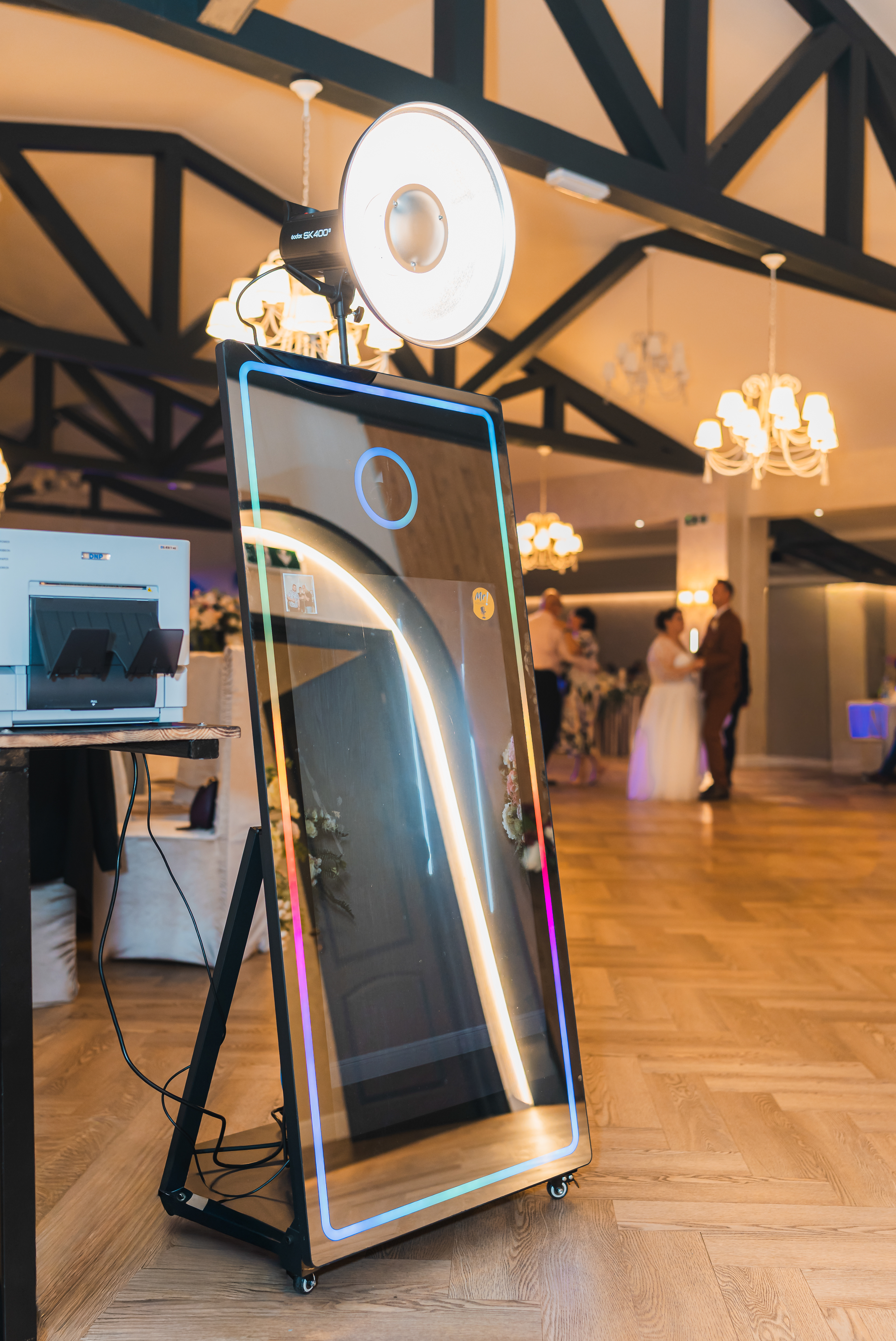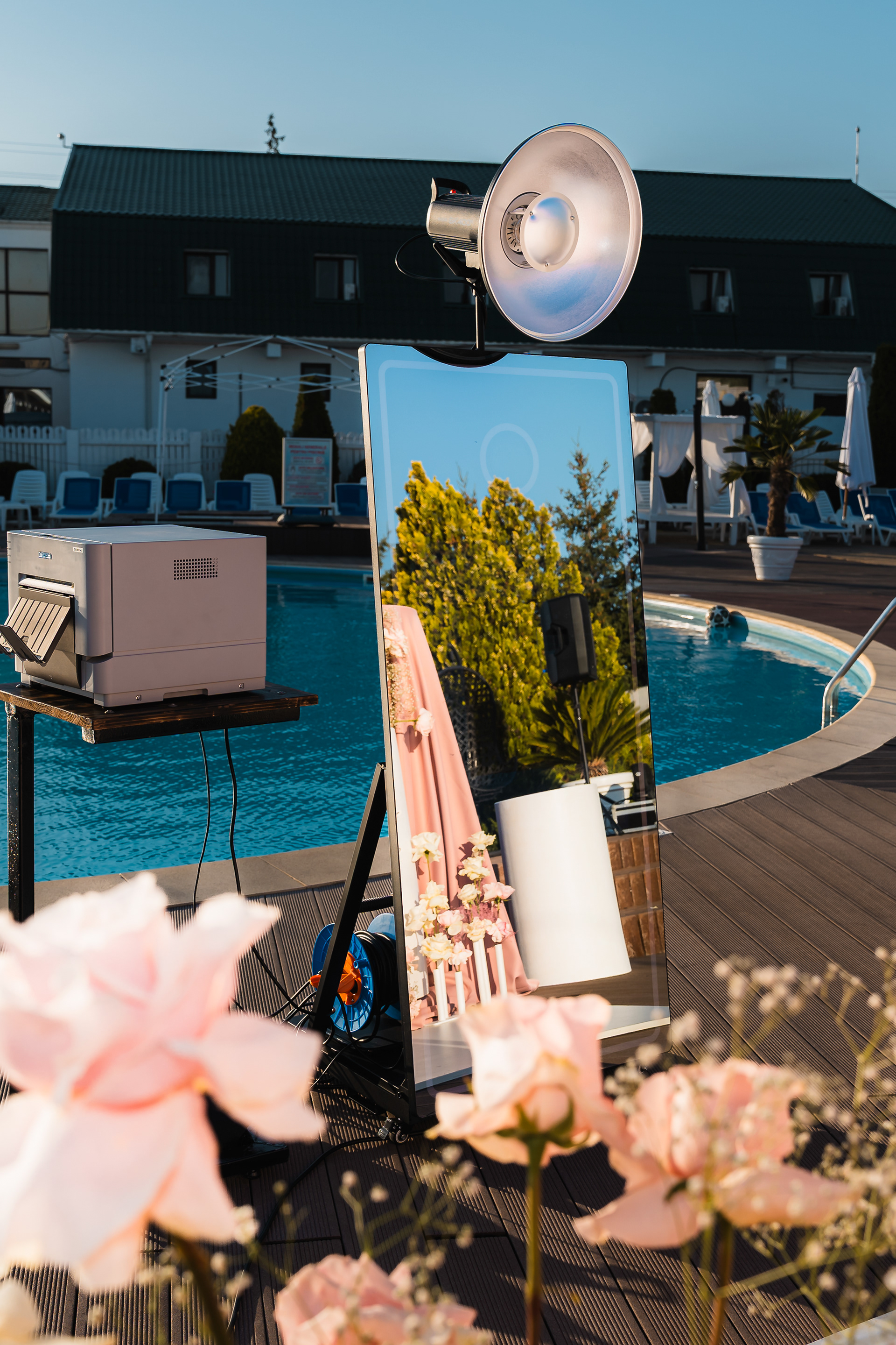Eleganță și interacțiune. O alternativă sofisticată la cabina foto tradițională. Cu un design impunător și ramă elegantă, Oglinda Foto se integrează perfect în decorul evenimentului, devenind un punct de atracție vizuală. Invitații se văd în mărime naturală, interacționează cu ecranul tactil și primesc pe loc o amintire fizică de calitate (print), personalizată cu grafica evenimentului.